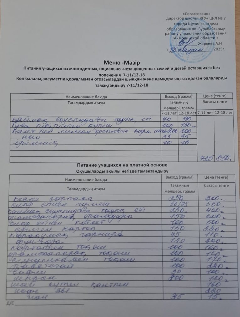 "Ақмола облысы білім басқармасының Бурабай ауданы бойынша білім бөлімі Щучинск қаласының №7 мектеп-лицейі" коммуналдық мемлекеттік мекемесі