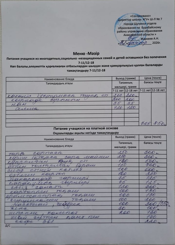 21.01.2026 күнгі ас мәзірі